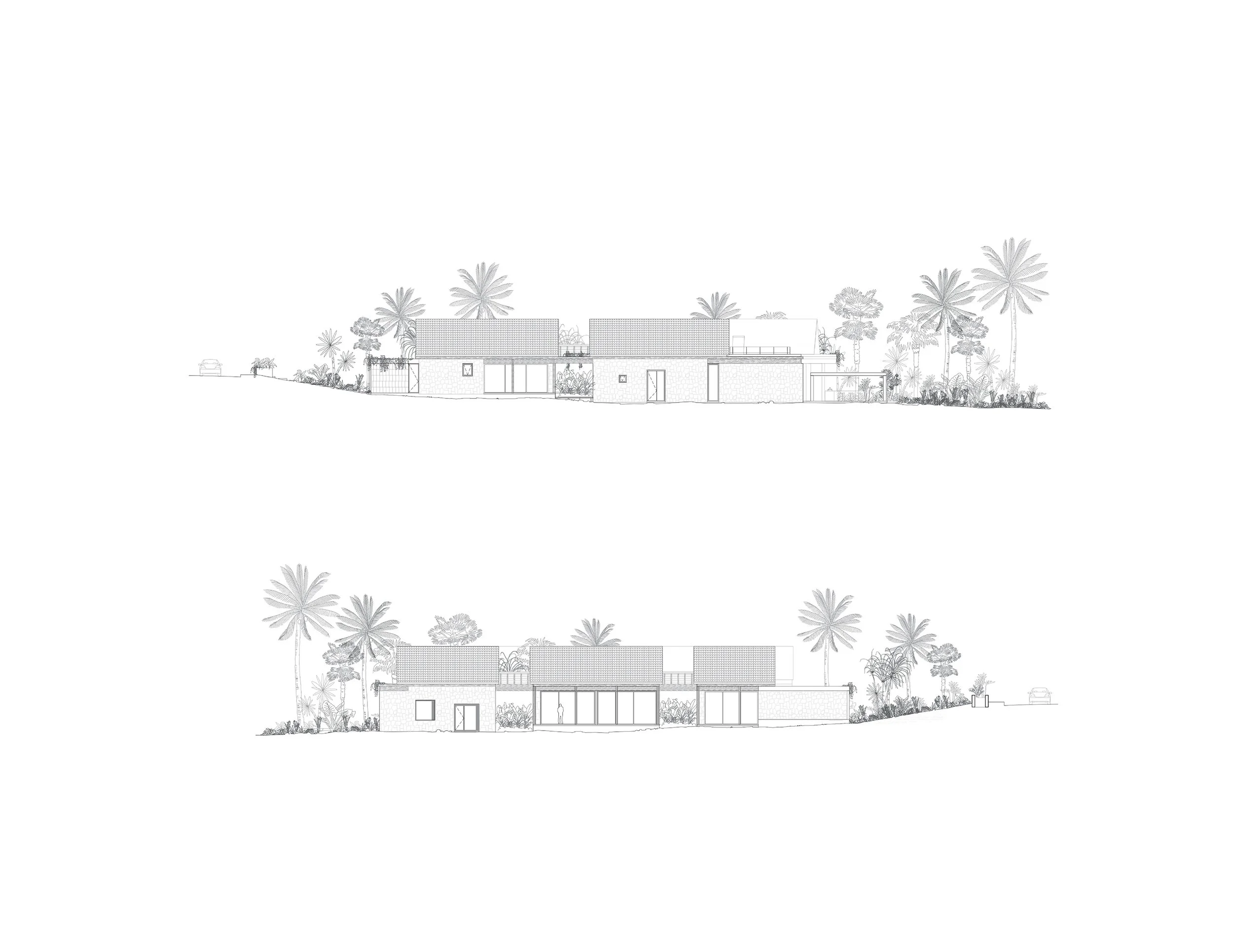 Our architectural design strategy prioritizes an uninterrupted view of the sea, while also creating a central courtyard that maximizes the use of bioclimatic design techniques and adheres to a strict height restriction to preserve the site guidelines.